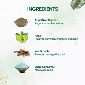 Avipattikar Churna: This is a time-tested and proven Ayurvedic formulation for acidity and is the core of what makes Acidity Relief an effective acidity relief medicine. It combines 14 natural ingredients to help regulate acid secretion, promote digestion, and improve nutrient absorption.