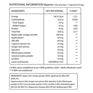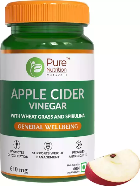 Pure Nutrition Apple Cider Vinegar capsules consist of natural active ingredients. It is a potent fat burner that helps you lose excess fat and aids in weight management. Apple Cider Vinegar also helps eliminate toxins from the body, aiding good health. These capsules contain prebiotic apple pectin that assists in maintaining gut health. Enriched with probiotic lactic acid bacillus, these capsules help maintain healthy gut flora and support the smooth functioning of the digestive tract.
