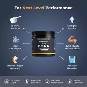 Nutrabay Gold Bcaa 2:1:1 With Electrolytes|5g Bcaa | Pre/Post Workout Energy Drink|250g | Guava